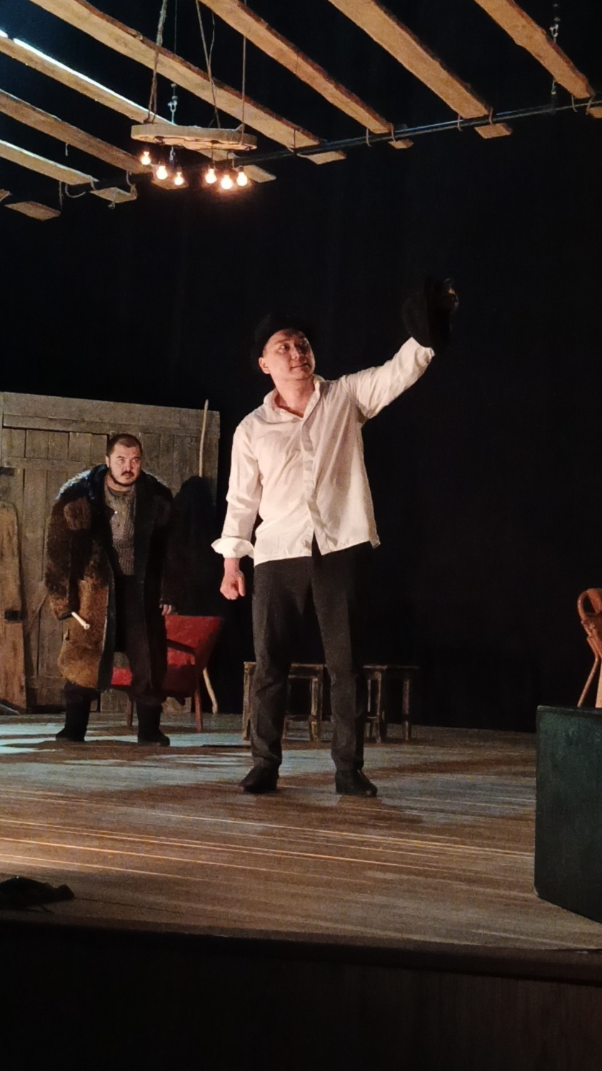 Узнав, что на театральном фестивале покажет спектакль Акмолинский областной русский драматический театр из Казахстана (г. Кокшетау), сразу же включила его в расписание. Режиссер Тимур Кулов поставил драму-вестерн по рассказу советского казахского писателя и драматурга Мухтара Ауэзова.