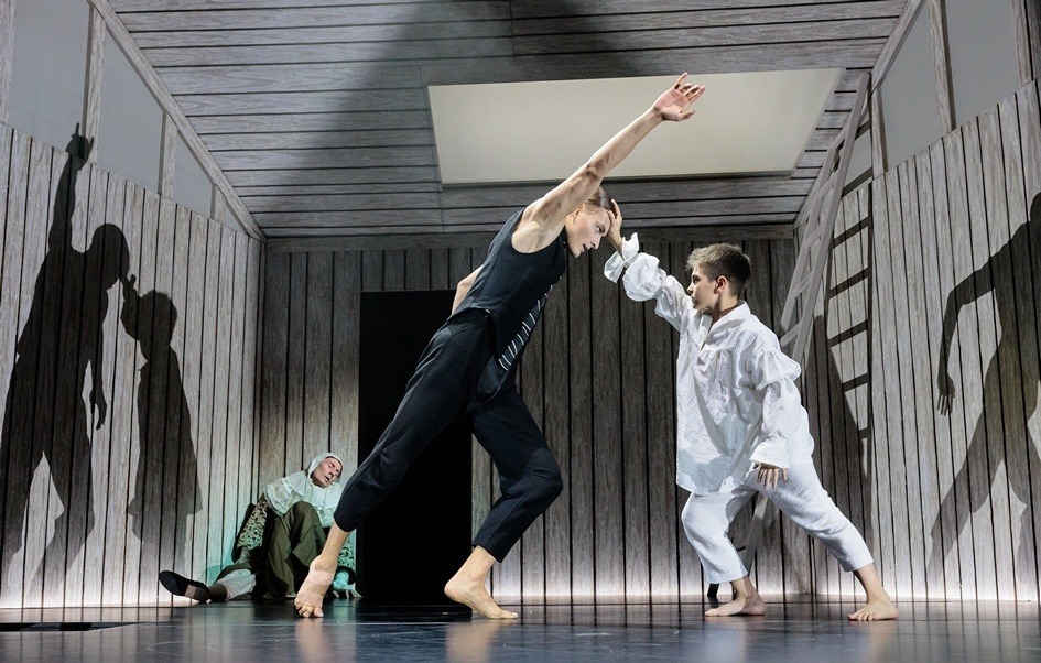 На Малой сцене Театра Наций смотрел «Макбета» Елизаветы Бондарь (работа 2023 года). Если коротко — это Шекспир в антураже «Безумного Макса». Антивоенное высказывание тож. И то, и другое вызывает у меня сомнение заранее. Но это и в самом деле талантливая работа. Погружение в постапокалиптическое инферно, где люди одичали, даже говорить почти разучились (они грязны, одеты в лохмотья, в речи каждого какой-то речевой дефект) режиссер осуществила твердо и последовательно. Отмечу сценографию и костюмы — работа Валиды Кажлаевой. В центре сцены — огромное ржавое дерево, впечатляющий символ, этакий ущербный Иггдрасиль, и обитатели этого мира таковы же.