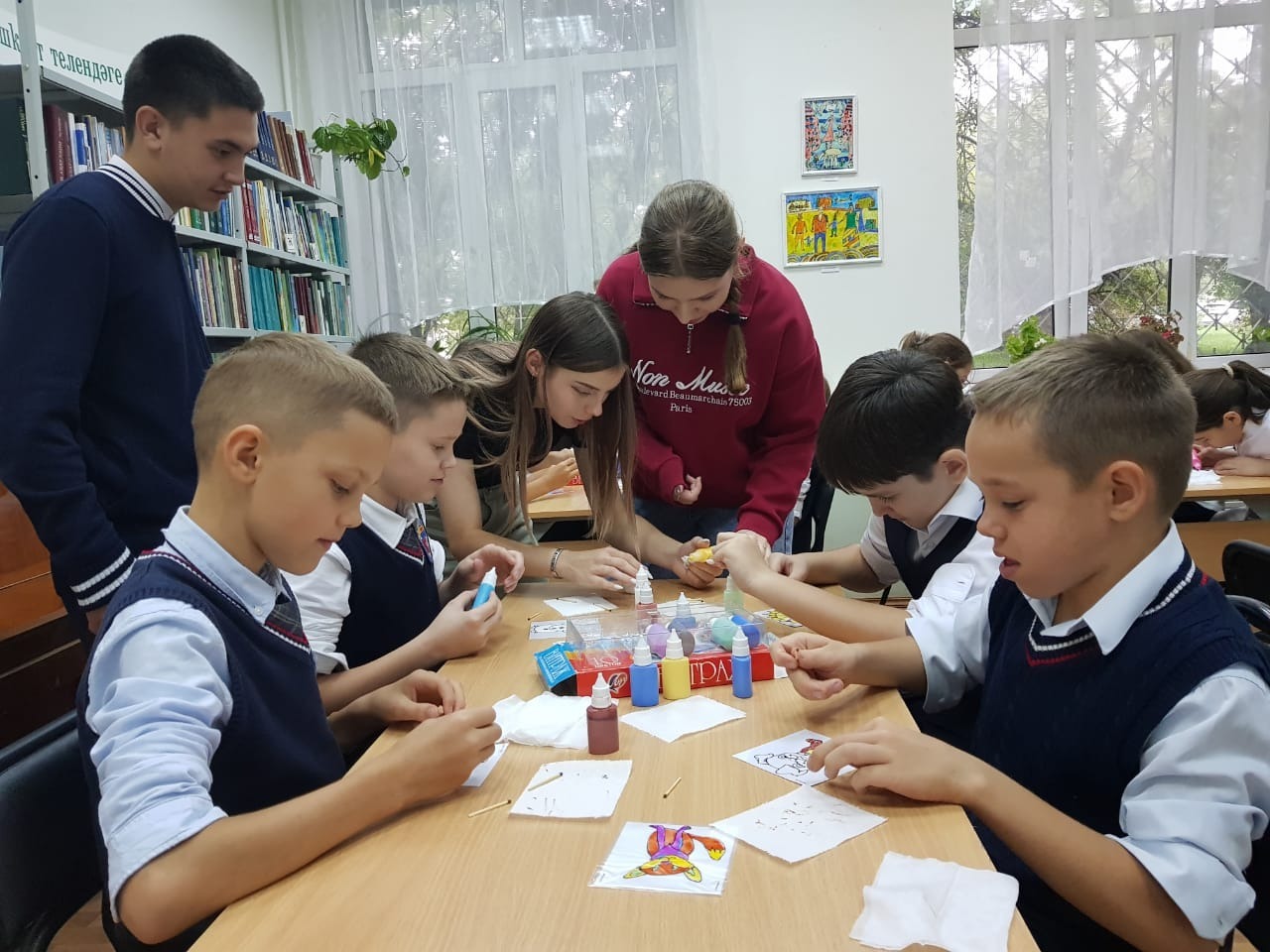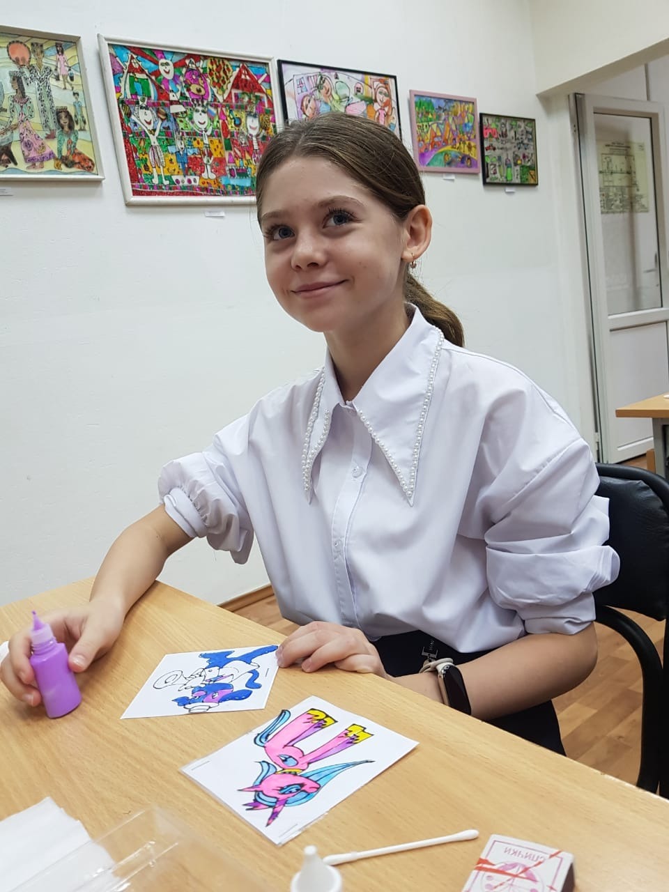 Друзья, не стану говорить про те работы, которые меня зацепили, дам вам самим выбрать ту работу, которая для вас станет источником вдохновения и запомнится надолго! Ребята, давайте поблагодарим Ирину Эдуардовну и её учеников за уникальную и волшебную выставку! Сегодня они мастерски, с учащимися из Центра образования № 53, смогли передать эту магию творчества учащимся 5-го класса МАОУ Лицея № 106. Нам всем было очень интересно поработать на мастер-классе «Рисуем витраж», настоящими витражными красками. Царившая здесь творческая атмосфера позволила каждому вдохновиться, увлечься витражом и красивые рисунки будут приятным воспоминанием об этой необыкновенной встрече.»