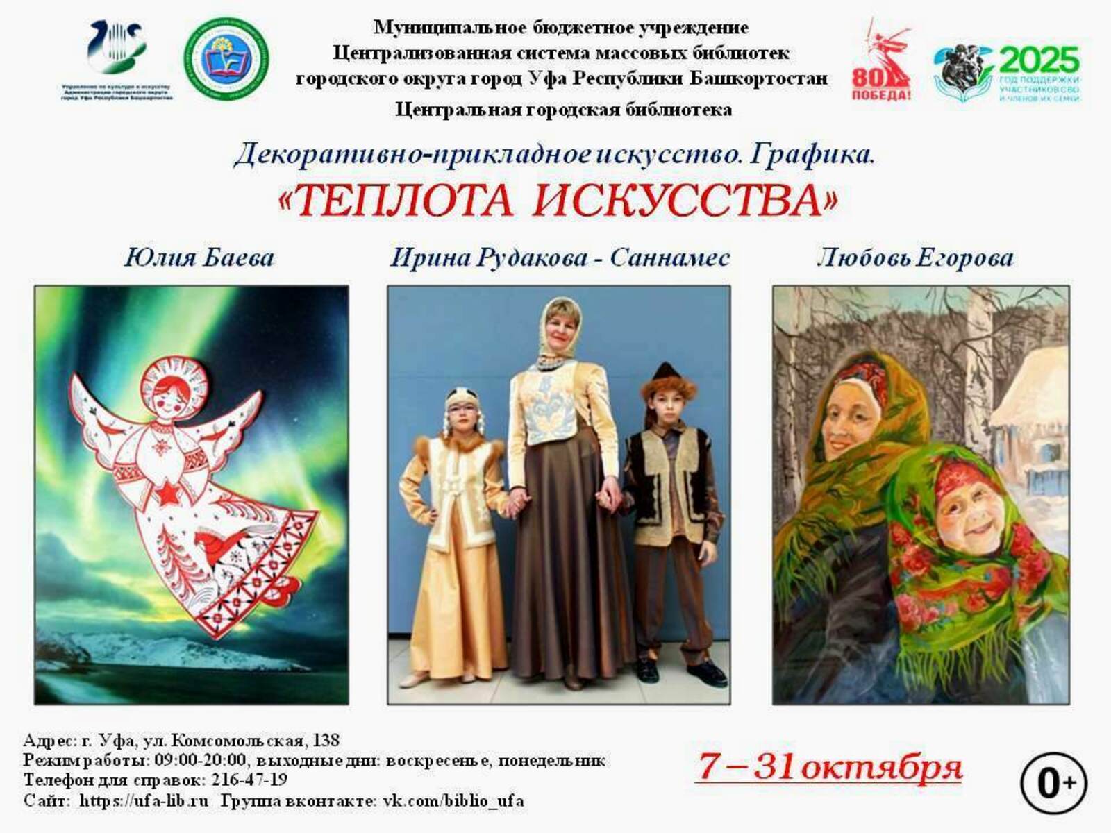 На прошедшей неделе, 7 октября, в выставочном зале Центральной городской библиотеки состоялось торжественное открытие выставки декоративно-прикладного искусства и графики «Теплота искусства», посвященной празднованию 80-летия Победы в Великой Отечественной войне и Году Защитника Отечества.