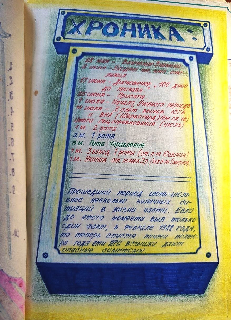 Все, с кем я взаимодействовал — это и комбат — подполковник Причипелюк, замполит батальона — майор Горчаков и старший лейтенант Парандий — освобождённый комсомольский секретарь, и замполиты рот — в какой-то момент стали намекать: «Что ты тут делаешь?». Однажды замполит мне сказал: «Давай мы тебя протолкнём во Львов в высшее военное на журфак. Ты и так много чего сделал, все уже прекрасно о тебе знают». Но не судьба…