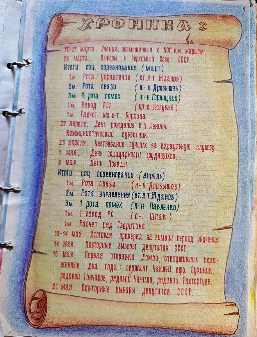 Могу сравнить те ощущения с дамбой или с плотиной. Вот именно… Меня как будто прорвало, как плотину… Копилось, копилось, накопилось и вылилось… (в сторону). Сейчас объясню… Клубная армейская работа — это, что-то совсем особенное на фоне уставных порядков. Но гласность и перестройка сделали своё дело. Это и фильмы, которые демонстрировались три раза в неделю. О репертуаре сейчас лучше не начинать говорить, иначе никаких байтов-килобайтов не хватит. Это и библиотечная работа. Количество томов в библиотеке перевалило за тысячу. Это и музыка. Появились музыкальные инструменты и образовалось четыре группы в полных составах, а внутри этих групп «мигрировали» по-моему только барабанщики, сейчас уже точно не вспомню… Рок-фестивали я вспоминаю с такой душевной теплотой, аж до мурашек… Это и эстрадные выступления. Запустили игры КВН среди всех рот…