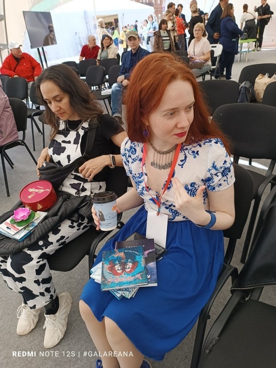 Следующий раз мы со Стефанией Даниловой в Уфе пересеклись жарким днем 25 мая 2024 года на Книжной ярмарке Китап-Байрам. Накануне я получила письмо: «Я видела Уфу белоснежной и горькой. Интересно, какая она весной? Моя Альфия, которая поёт песни на мои стихи, подарила мне национальное башкирское украшение, и я поеду в нем. На его родину.»