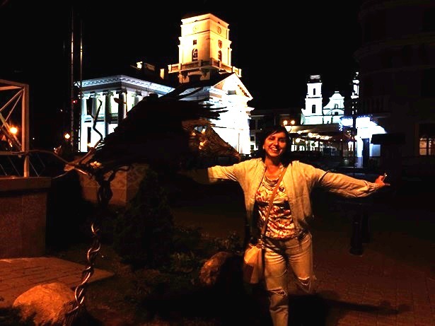 Постфактум я осознаю, что она хоть и не закавычивает название «Беларусь», но имеет в виду «высотку» на моём снимке. Но в тот момент не понимаю её я (а не она меня). Я-то думаю, что она спрашивает, где, мол, я поселился, откуда свой фоторепортаж веду.