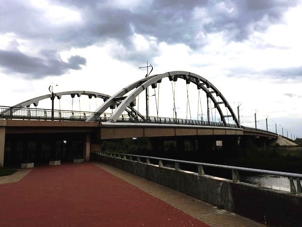 Слева от нас, за скульптурой — двухэтажные кирпичные казармы. Мы не сразу идём в сердце Цитадели, хотя перед нами, как на ладони — Площадь церемониалов, Главный монумент и Штык-обелиск. Всё это прямо по курсу. Но мы сворачиваем в сторону казарм, обходим их с внешней стороны и движемся вдоль них и Мухавца. Казармы восстановлены, хотя тоже частично. Есть вообще полные руины — эти как будто законсервированы… современным бетоном. Восстановленное чередуется с разрушениями. Следы от пуль и снарядов везде. Обсуждаем с женой, какие части казарм могли сохраниться от довоенных построек, а что «сложено-достроено» поверх руин уже после войны. Мнения часто не совпадают, хотя мы те ещё знатоки! Дилетанты, одним словом.