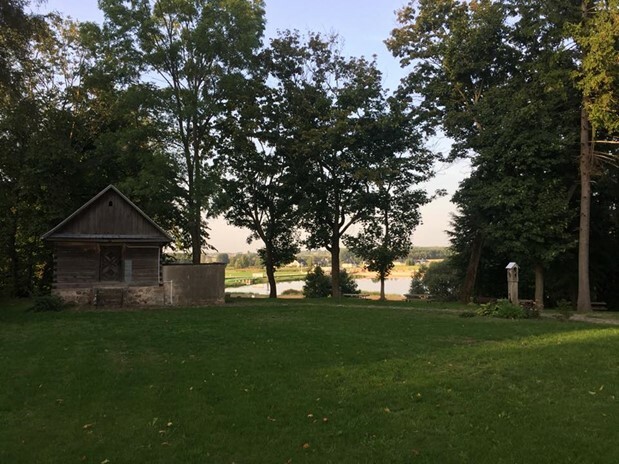 За костёлом – какие-то старые строения. Заглянули за невысокую ограду. То ли парк, то ли погост, то ли что-то хозяйственное. Там тоже пусто. Туда есть вход, он открыт, но мы туда не пошли. Поехали дальше. Ещё этого добра насмотримся.