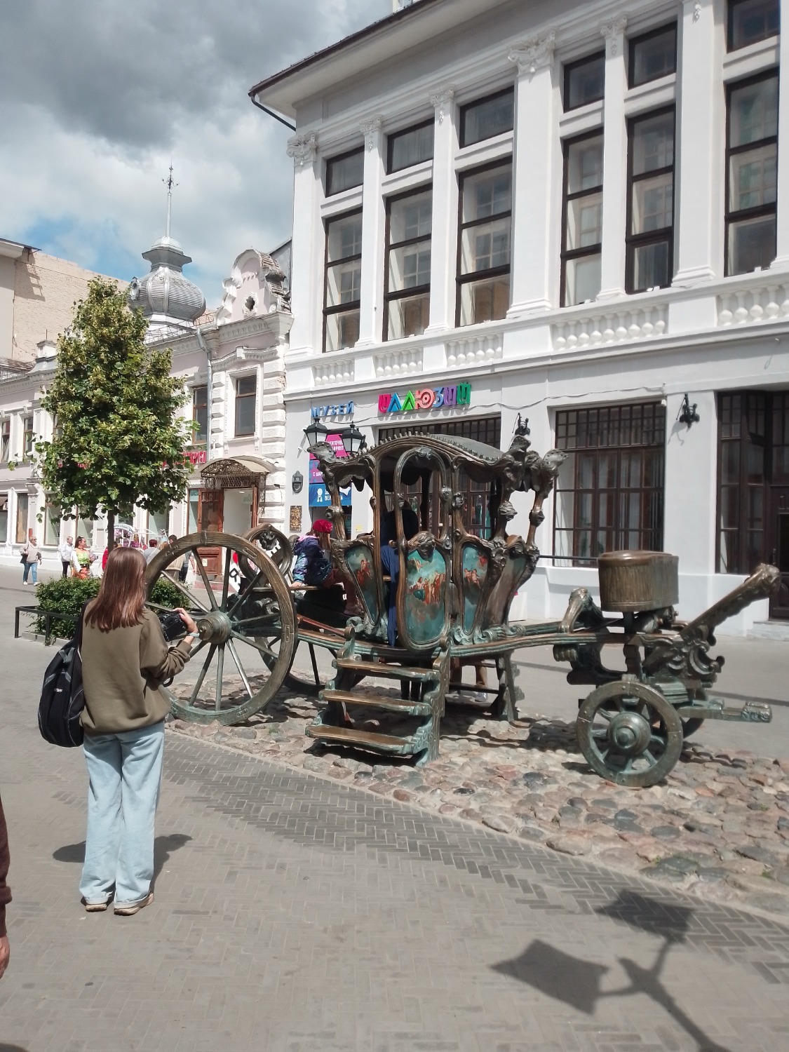 Царский подарок хранится в Государственном музее Казани, а вот его копию, сделанную из чугуна, но в точности передающую очертания и размеры оригинала, мы и наблюдаем на улице Баумана.