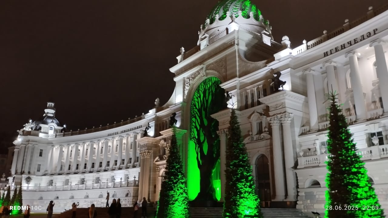 …Ночная Казань великолепна. Разноцветная иллюминация словно погружает в сказку, вызывает ощущение праздничного волшебства и чуда. Это хочется видеть снова и снова. Искусство ночной подсветки придаёт старинным и современным постройкам монументальный и неповторимый вид. Подсвеченные грани строений в общей картине с многочисленными уличными фонарями и сверкающими фонтанами со световыми эффектами великолепно смотрятся и завораживают.