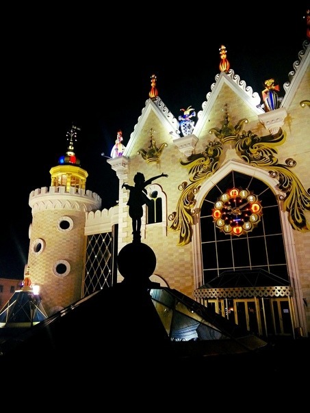 По бокам высятся четыре башни с жёлтыми куполами и миниатюрными флюгерами, фасад украшают цветные витражи, а перед входом гостей встречает скульптура Маленького Принца.