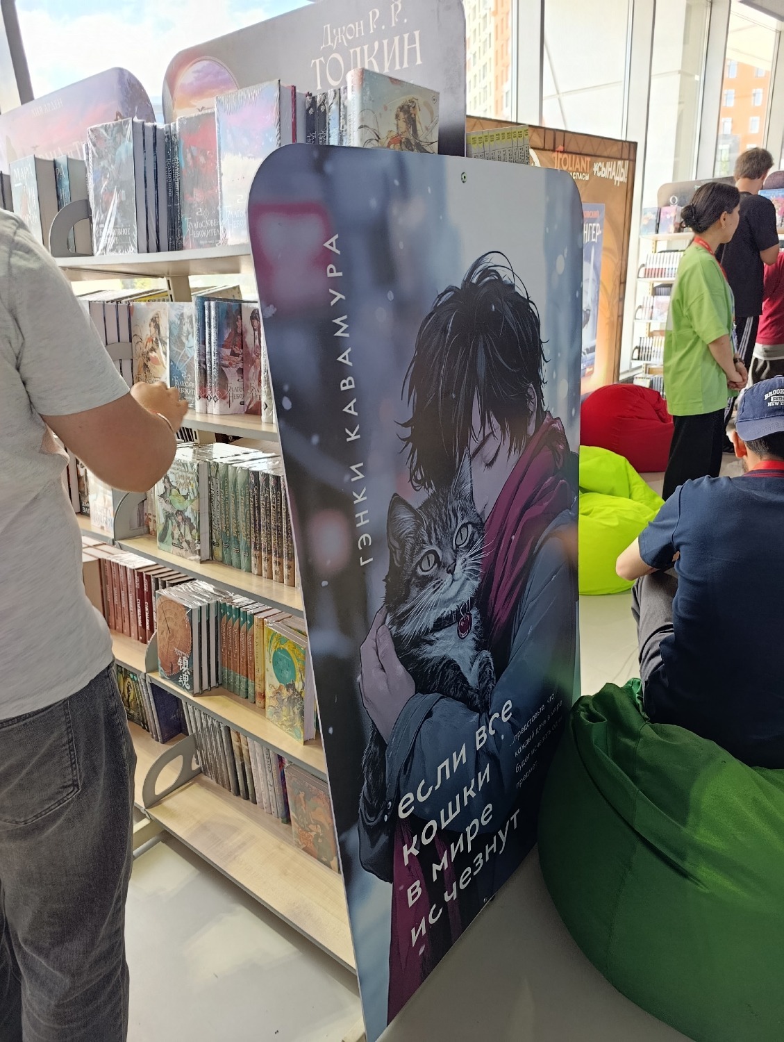 Интересный стенд, где можно раскрашивать огромную картину. Зоны, где играют и в модные автоматы, и можно посмотреть на танцевальный автомат, который у нас не распространен, и попробовать, но очередь. Есть интересный азиатский фастфуд – коробочки с наклейками, то ли артисты, то ли айдолы, то ли персонажи аниме и манги. Очередь к известной художнице за автографом. Стенды с книгами, вокруг кресла-мешки, упасть и читать, разглядывать красочные тома или разглядывать красочную толпу?