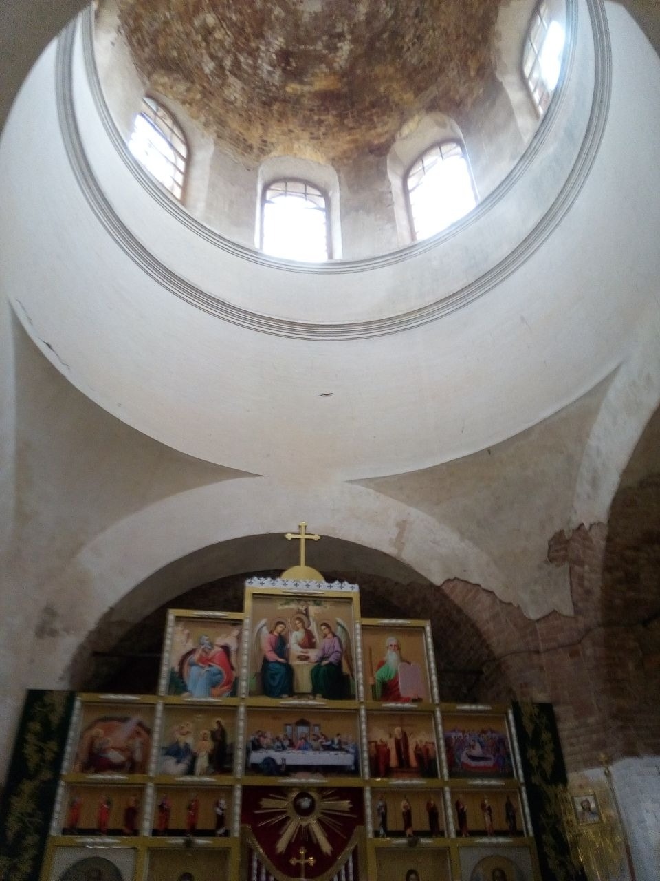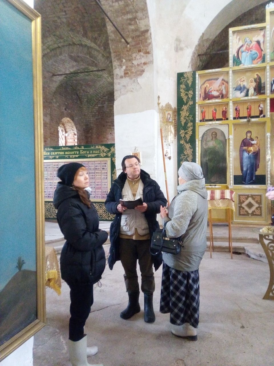 В лучших традициях гостеприимства нас сразу накормили горячим вкуснейшим обедом с дороги и проводили к храму. Михайло-Архангельский храм построили в начале ХХ века — при царе Николае Искупителе.