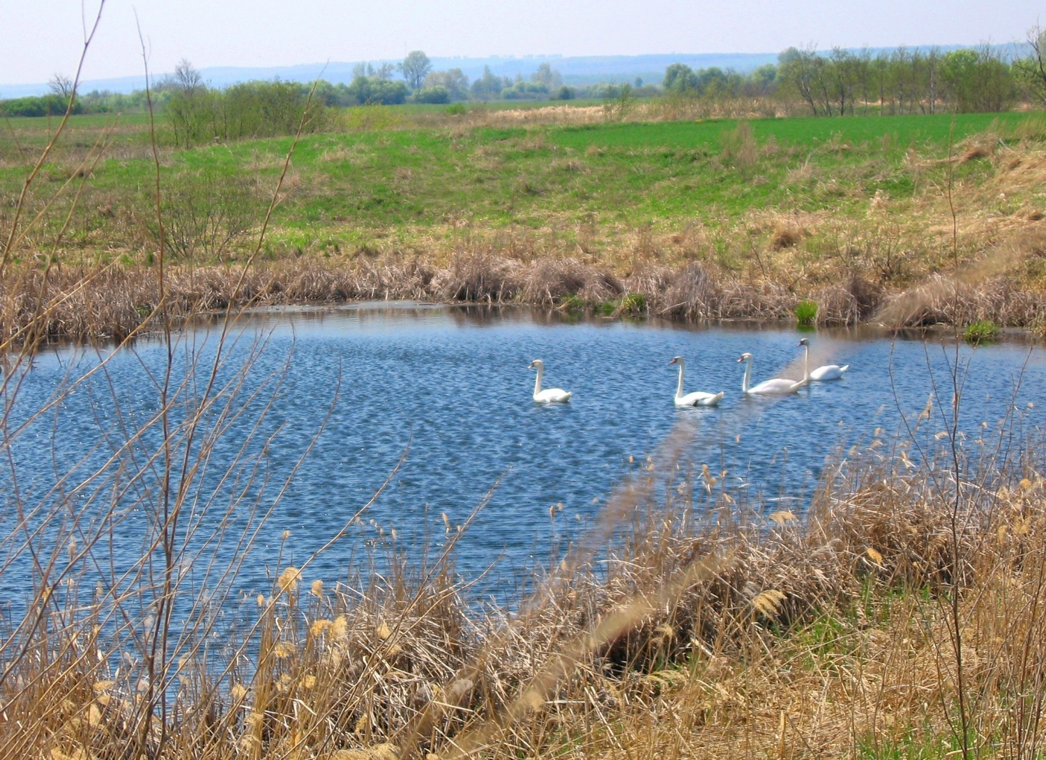 Мой путь начался недалеко от крупного села Зирган. Первая старица встретила меня длинной извивающейся лентой, утопающей в черёмуховой тени. Название ей – Аккошкуль, что в переводе с башкирского языка означает Лебединое озеро. В этой заводи, скрытой от посторонних глаз, находят кров и выводят птенцов благородные лебеди. В тот день я их здесь не застал, а встретился с ними на берегу другого озера – Ереккуль (Ольховое озеро), расположенного ближе к деревне Верхнеюлдашево. Здесь на виду у всех грациозно скользили по воде четыре птицы. Ранее вокруг озера произрастала ольха, но теперь его берега пустынны.