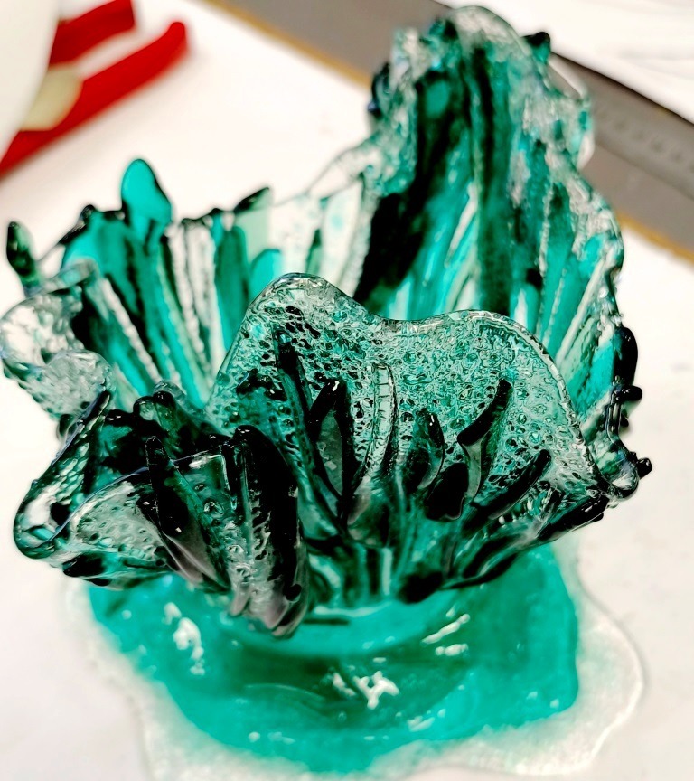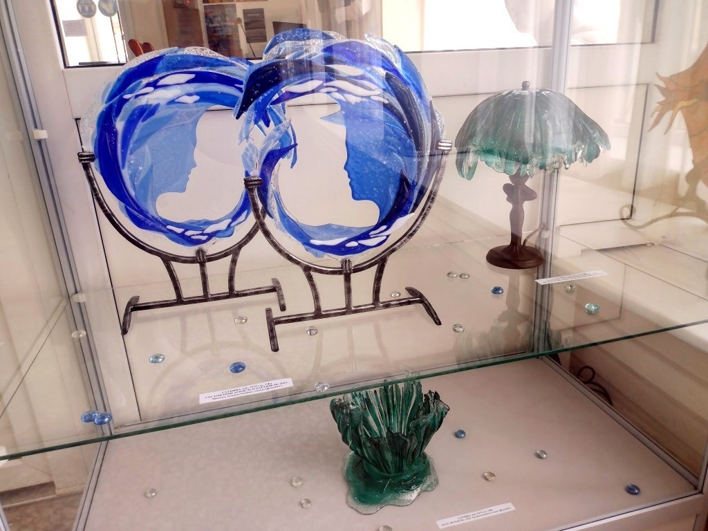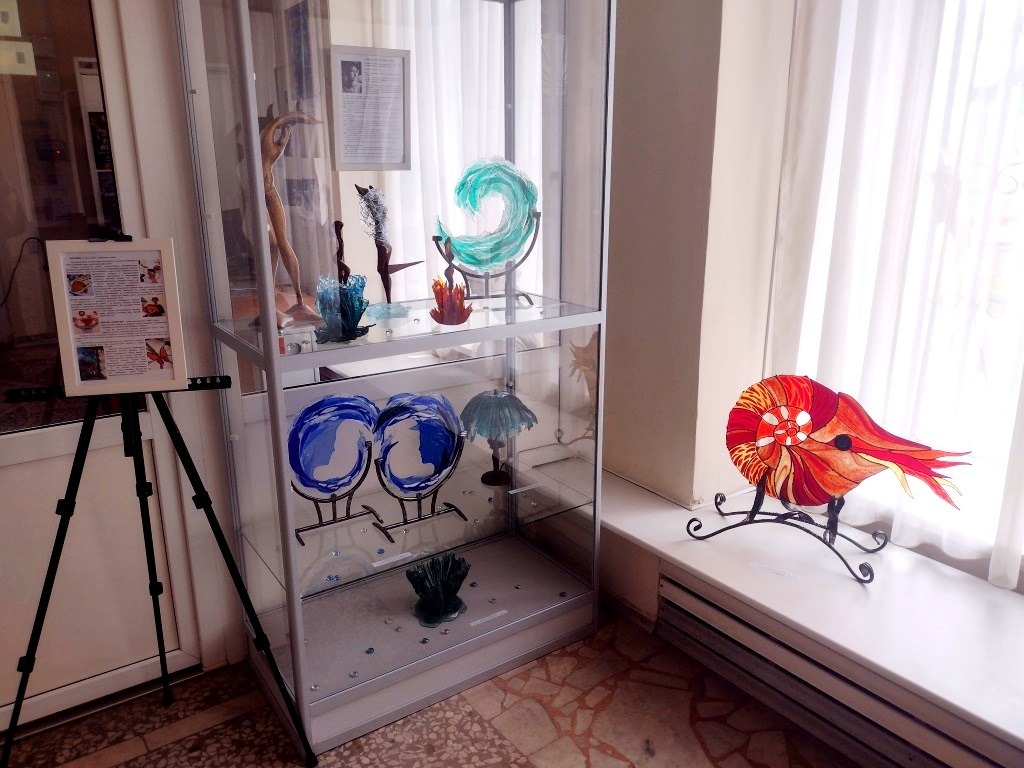 Так, например, основой витража в технике фьюзинг служит стеклянный лист, являющийся своеобразным «живописным холстом», на котором художник-витражист «пишет» своё произведение при помощи высокотемпературной печи и кусочков специального стекла. При помощи термической обработки, художественное стекло приобретает оригинальную фактуру и разнообразную цветовую гамму. Изображение на витраже может быть объёмным и выпуклым, контуры рисунка воздушны и прозрачны, как у акварели. Примером тому являются представленные на выставке авторские работы, излучающие свет и тепло — панно «Изумрудная волна», «Четыре стихии» и ваза «Всплеск».