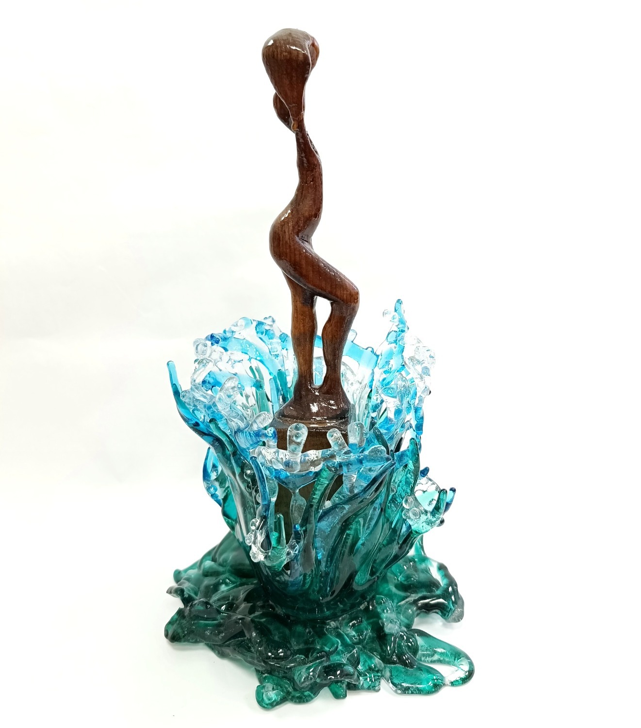 Оригинальностью композиции и своеобразной технологией изготовления отмечены работа «Сёстры-реки Агидель и Караидель» и настольная лампа «Моя стихия». Здесь автор применил технологию моллирования (термическая обработка стекла), в ходе которой материал, изгибаясь при высокой температуре под давлением или собственным весом, принимает различные изогнутые формы.