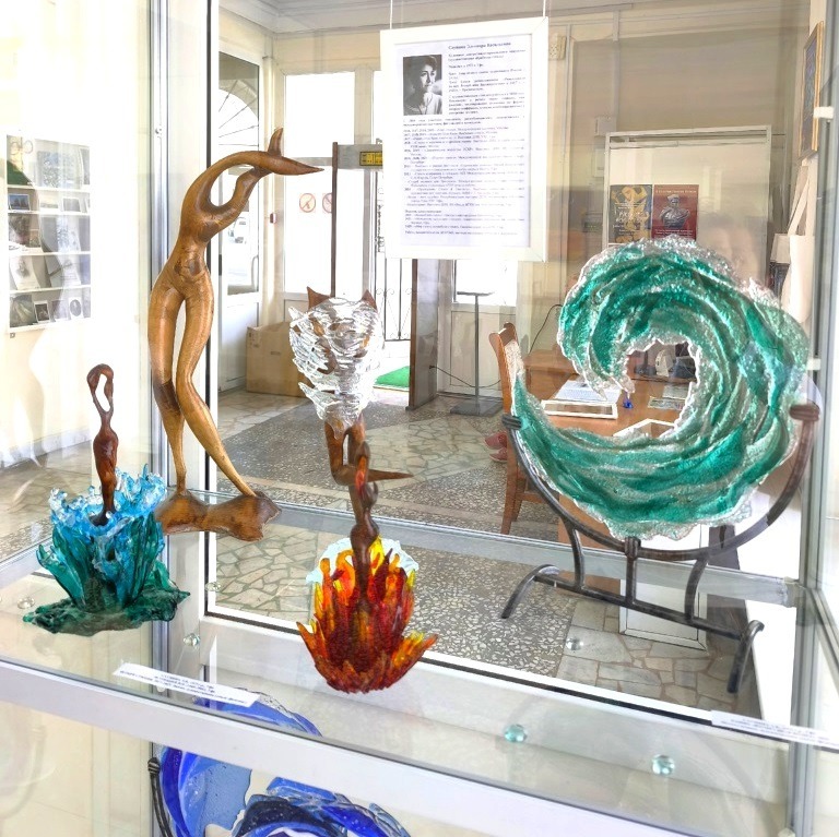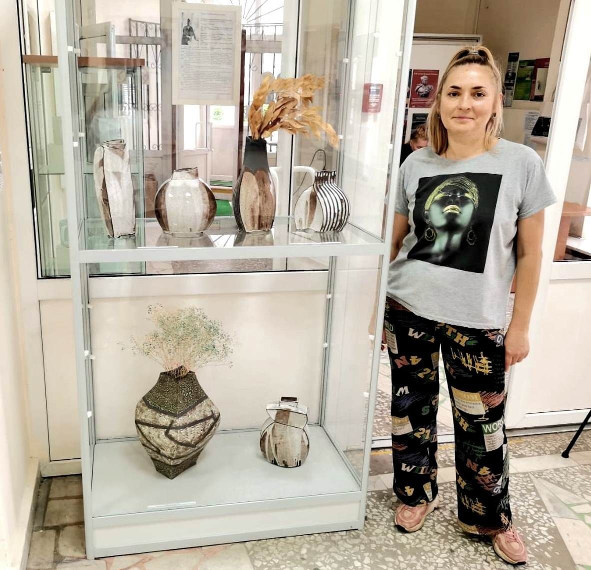 Несколько керамических произведений представила в своей витринной мини-выставке педагог-художник, член Международного союза педагогов-художников, участник городских, республиканских, всероссийских, международных выставок, конкурсов и фестивалей, преподаватель рисунка, живописи, композиции и керамики в Детской художественной школе № 2 г. Уфы Альбина Радюн.