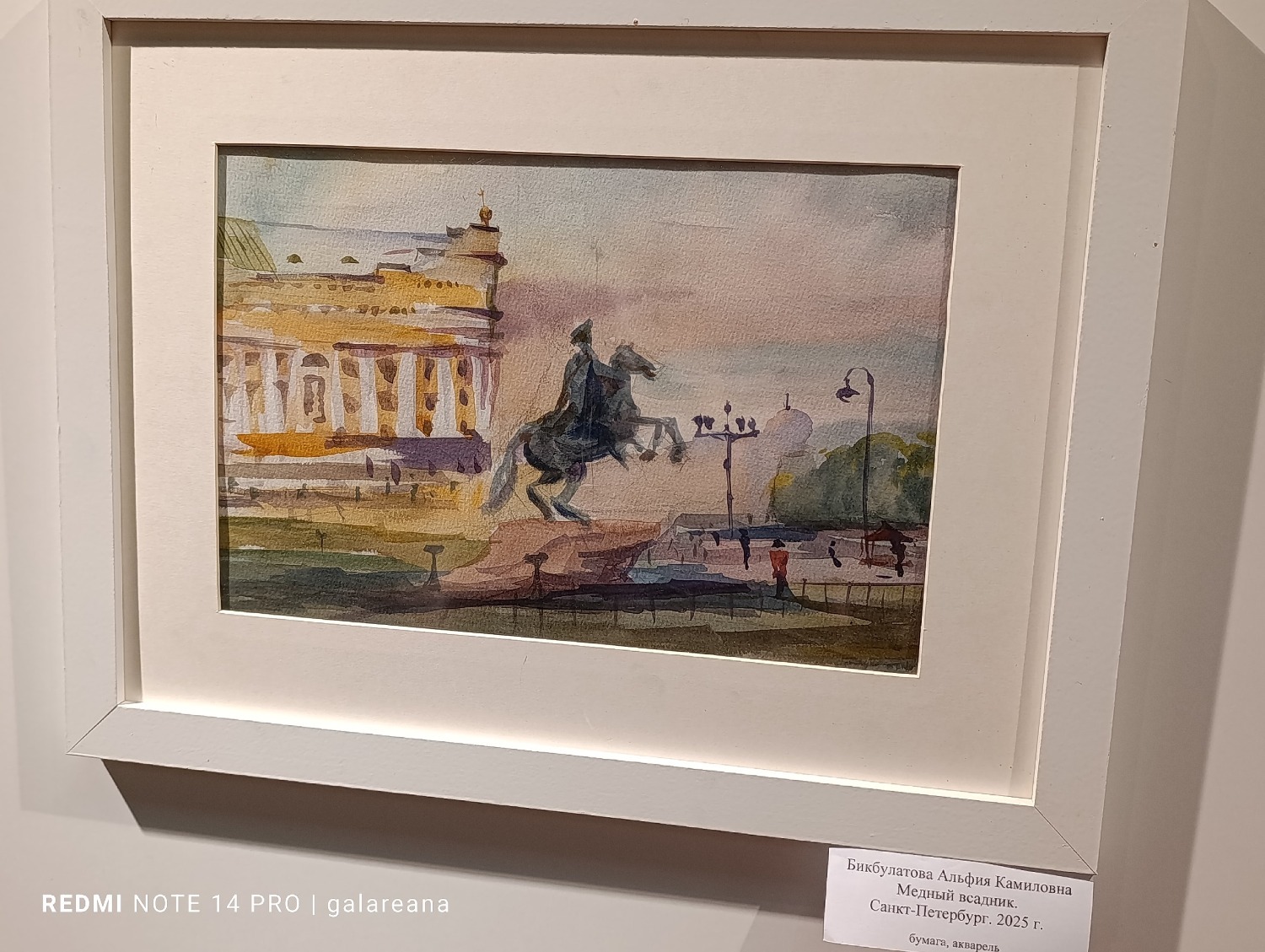 Конец августа – это время мягкого света и высокой влажности – подходящее время для акварели. Тем более для питерских акварелей. Альфия Камиловна как преподаватель вывозила своих студентов на пленэр в Санкт-Петербург и сама активно рисовала новые работы. Получилось впечатляюще. Столько сияния в этих видах, столько познания и открытия красоты, и соборная мечеть, и Медный всадник, и многие другие, знакомые и не очень, уголки Петербурга смотрятся свежо и неожиданно. Только через призму художественного видения можно поймать эту сохраненную энергию красоты.