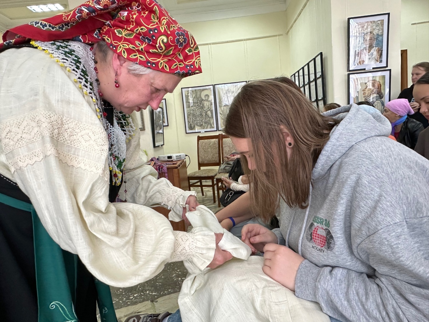 Студенты экономико-юридического колледжа (БЭК) посетили лекцию-дефиле в ходе которой были представлены не стилизованные, а реконструированные (воссозданные по образцу) костюмные комплексы. Такая интерактивная форма объяснения особенностей национального костюма пришлась по душе юным дизайнерам.