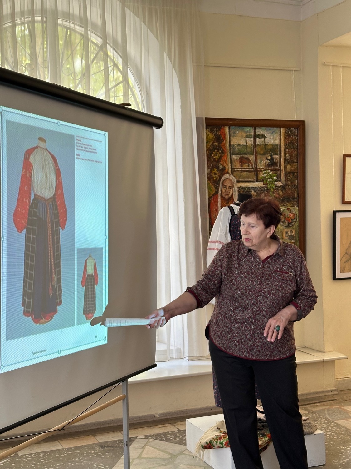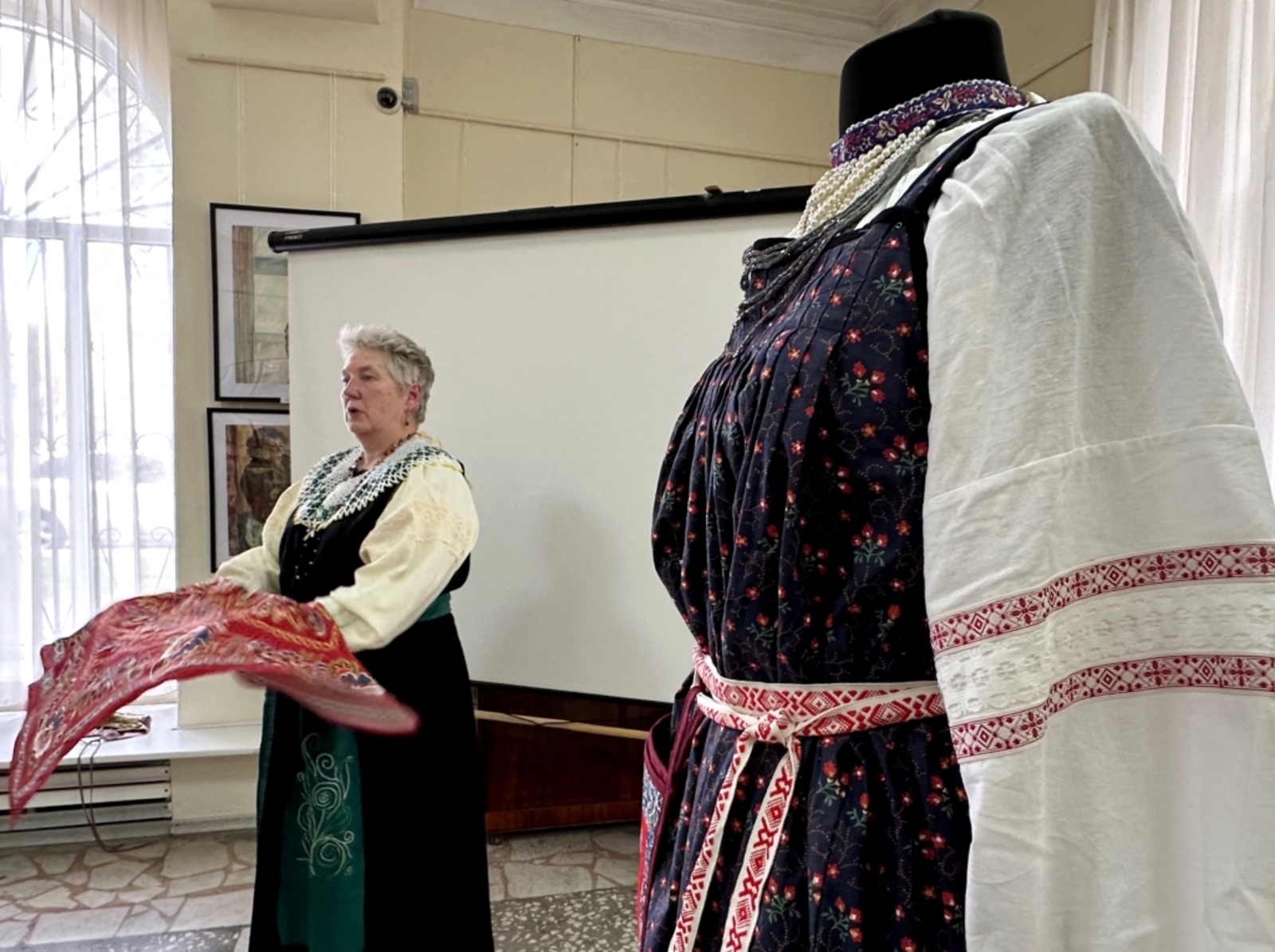 Клуб народных традиций «Краснотал» под руководством Людмилы Петровны Васильковой представил коллекцию реконструкций русского народного костюма. Украшением мероприятия стала лекция Людмилы Васильковой и её коллег об истории развития костюма, конструкции, материалах и декоре, орнаменте. Участники познакомились с такими понятиями как «душегрея», «кокошник» и многими другими.