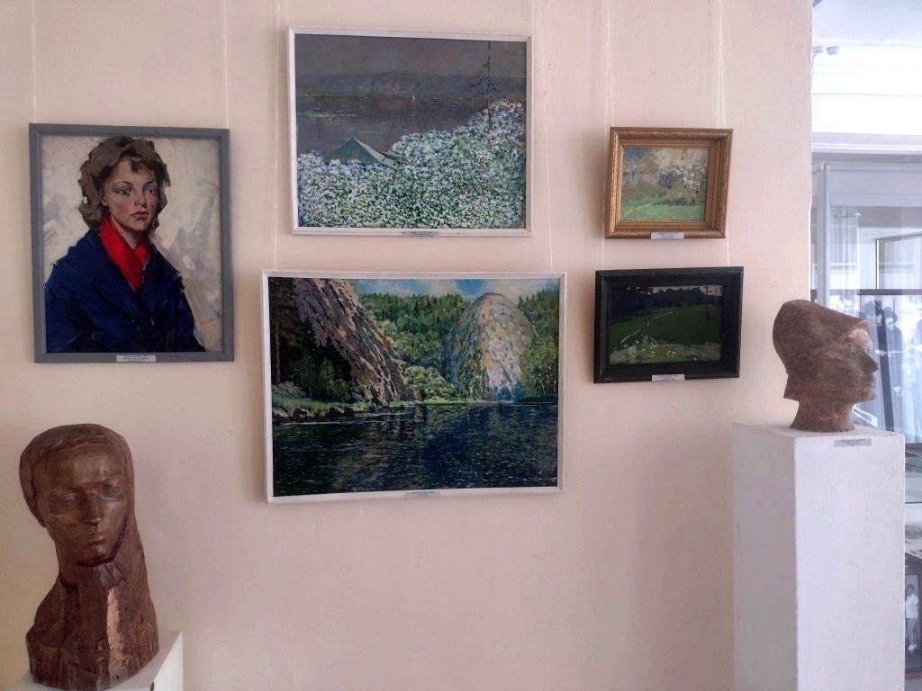 Таинство природы и яркие характеристики персонажей переданы в живописных этюдах и портретах «Домик окнами в сад», «Вечереет», «Девушка с красным шарфом» выпускника Пензенского художественного училища им. К. А. Савицкого Георгия Максимовича Крупина (1935–2019).