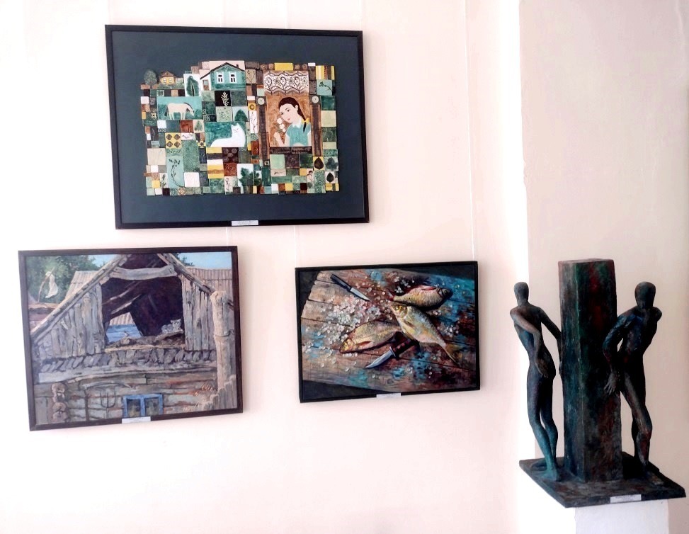 Уютный уголок, отражающий деревенскую жизнь, удачно скомпонован произведениями молодых преподавателей Динары Гарифуллиной («В родном доме», «Мои травы»), Али Родионовой («Лещи») и Айгуль Сираевой («Охота»).