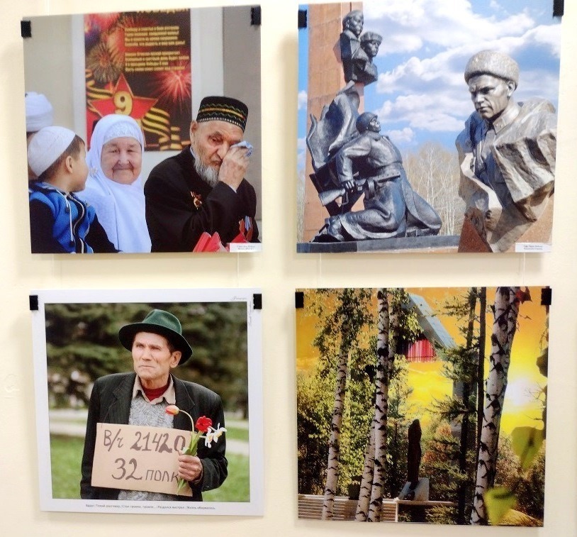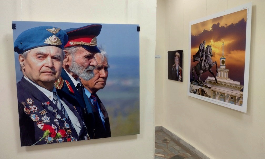 Первый раздел выставки посвящён 80-й годовщине Победы в Великой Отечественной войне 1941–1945 годов, ветеранам, исторической памяти и преемственности поколений. За каждым снимком как за полотном картины – своя история. Так, на монументальной фотографии зритель увидит одного из героев – Исмагилова Ришата Салиховича, встретившего войну на рассвете 22 июня 1941 года в Брестской крепости. Спустя семьдесят лет этот ужас войны он подробно описывает в своих страшных воспоминаниях. Здесь же оперативные фоторепортажи с парада Победы в Уфе, где запечатлены ветераны войны – Герои Советского Союза, с орденами и медалями на груди, с алыми гвоздиками в руках, со слезами на глазах. Среди этих героических фотографий на фоне закатного неба на Советской площади в Уфе возвышается величественный памятник легендарному генералу, советскому военачальнику, командиру 112-й Башкирской кавалерийской дивизии Минигали Шаймуратову. На нескольких фотоснимках – в центре уфимского парка Победы запечатлена 25-метровая стела, с закреплёнными на ней портретами Героев Советского Союза Александра Матросова и Минигали Губайдуллина.