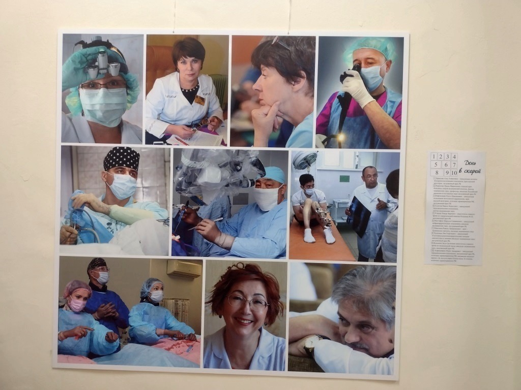 Особую благодарность в своём фотоблоке «День скорой» автор выставки выразил представителям гуманной профессии — кандидатам и докторам медицинских наук, заслуженным врачам РБ, медицинскому персоналу различных отделений больницы скорой помощи — терапевтического, отоларингологического, эндоскопического, нейрохирургического, рентгенохирургического.