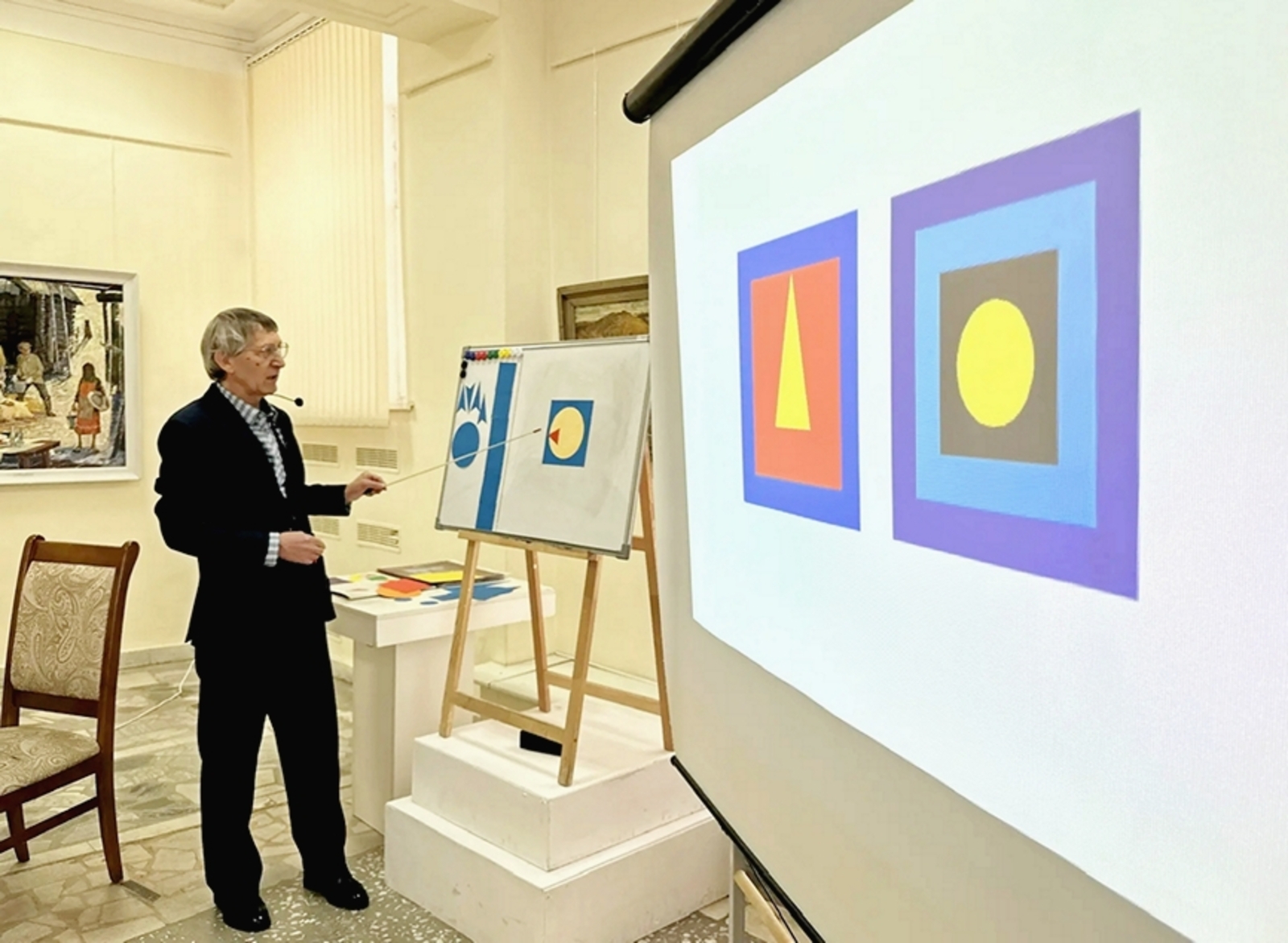Художник Василий Кандинский утверждал: «Цвет — это душа формы, а форма — это тело цвета». Одним из базовых акцентов в повествовании стало объяснение важности взаимодействия цвета и формы в композиции, а ёмким дополнением лекции — наглядный материал, который использовал Рамиль Хайрулович.