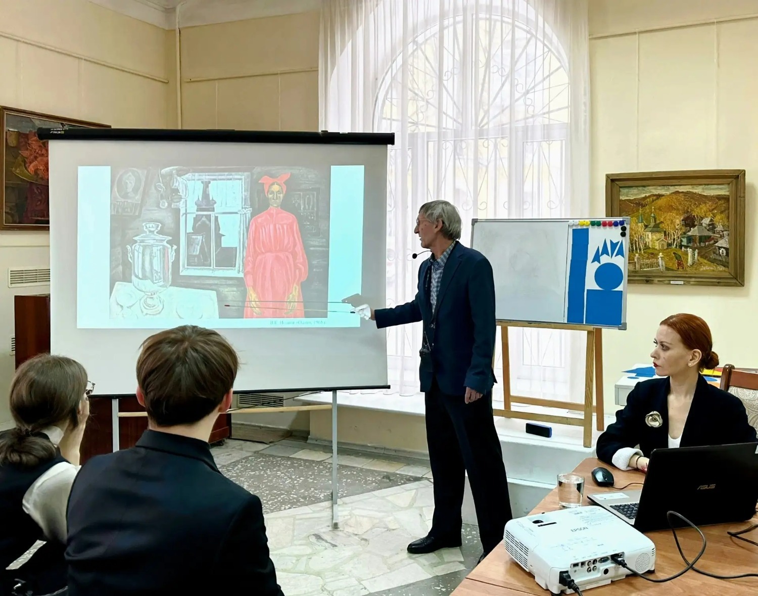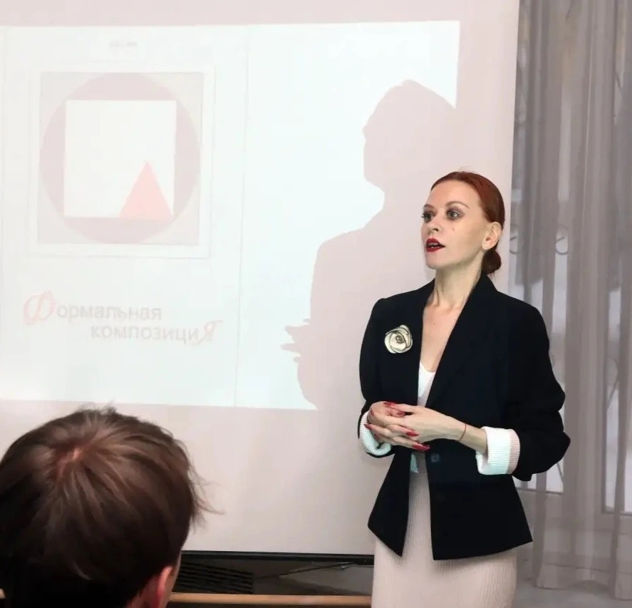 Помощниками лектора выступила магнитная доска и разноцветные геометрические фигуры, а ещё репродукции картин известных российских и европейских художников. С помощью такого инструментария мероприятие случилось более насыщенным и многогранным.