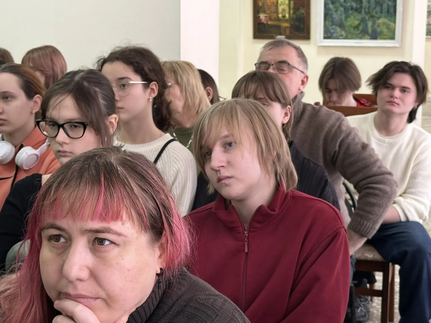 Основным девизом лекции являлась «формула»: композиция — это искусство объединения элементов в единое гармоничное целое. Рамиль Хайрулович акцентировал внимание на гармонии и целостности в композиции. Педагог-лектор рассказал о способах «чтениях» изображений, объясняющих пространство и время на холсте.