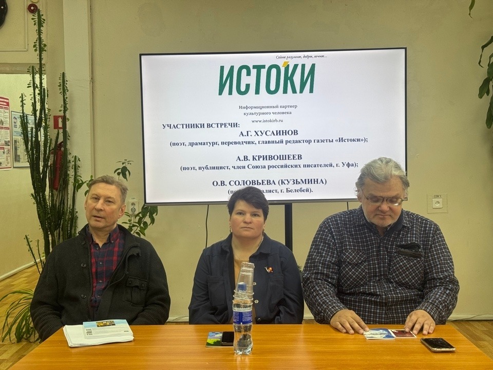 19 декабря 2025 года в Центральной библиотеке состоялась литературная встреча «Поэты и писатели земли башкирской», посвященная творчеству Айдара Гайдаровича Хусаинова, поэта Алексея Владимировича Кривошеева, поэта и журналиста Оксаны Викторовны Соловьевой (Кузьминой) со студентами медицинского колледжа.