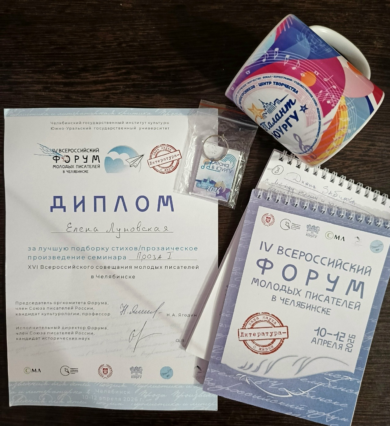 А я увезла из Челябинска диплом «За лучшее прозаическое произведение семинара „Проза I“». Большое спасибо участникам за обратную связь и впечатления, а мастерам — за подробный разбор и поддержку! Думаю, рассказ «Пепел» некоторое время полежит и подышит, а все технические замечания я внимательно пересмотрела и вижу, как сделать произведение более точным, художественным, живым.