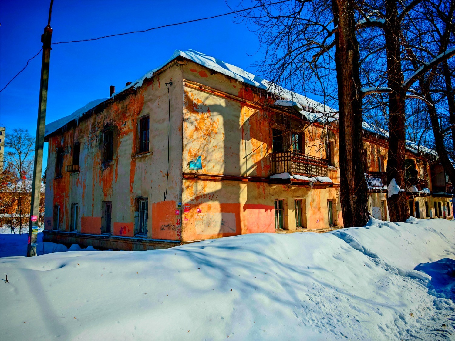 В блике безучастного солнца улыбаются… пытаются улыбаться двухэтажные, трёхэтажные, а то и четырёхэтажные «сталинки». Местами проступает дряхлость, она и есть дряхлость с обшелушенной краской. «Родимые пятна» волочатся, ползут по стенам – с каждым годом их больше и больше. Бумажные лохмотья объявлений: «Ищу работу, квартиру» – обычный трэш дней. Но зачем «спины» домов, спрашивается, пачкать? Чуть ли не издали дерет слух – стариковский хруст досок на лестничной площадке. Перила – нервная дрожь. Чуть тронь посильнее – и рассыплется ампирский замок в пыль. С крыш – с новомодных оцинкованных – свисают стекляшки, бижутерия. И все они, «сталинки», какие-то не от мира архитектуры – кочевряжатся, живут. Они как панки или рокеры вне времени. И лопочут, что и не разобрать толком: