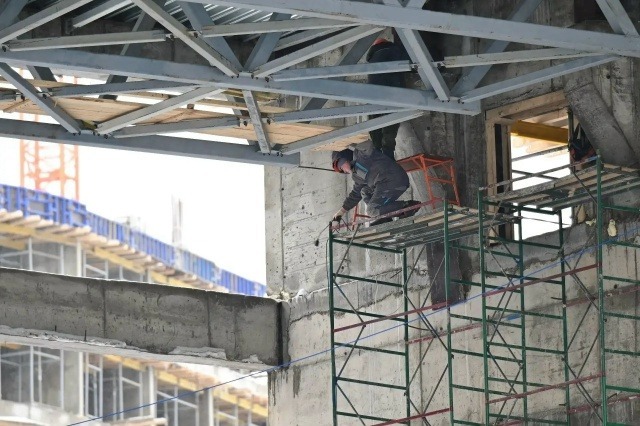 Стройка не останавливается ни на один день, на площадке всегда много техники и людей. Сдать этот важнейший объект планируется в следующем году.