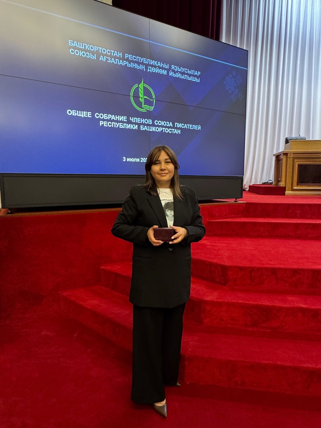 Ну, а теперь она стала профессиональным писателем. 3 июля сего года на общем собрании членов Союза писателей Республики Башкортостан Алену Кайбышеву приняли в Союз писателей Республики Башкортостан.