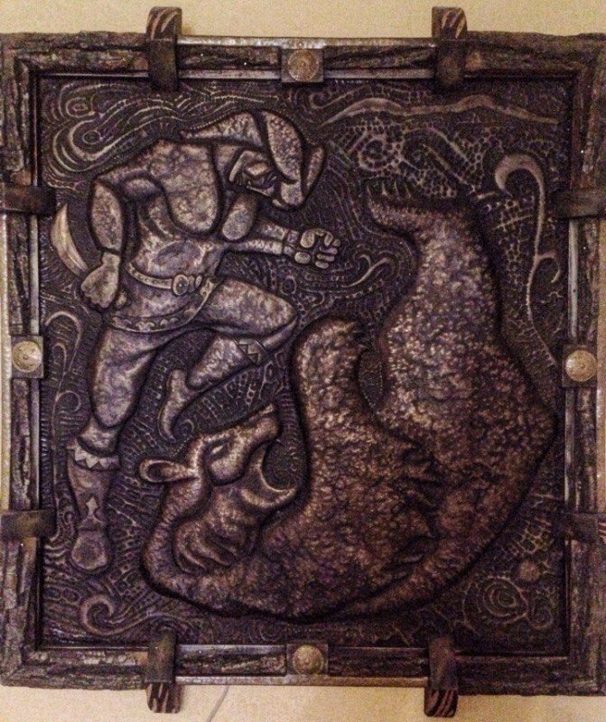 Недавно он сделал резные — колодец с медведями, крыльцо и вход для бани. Художник обучает мастерству и своего внука. Вообще, вся семья Леонида Михайловича — творческие люди.