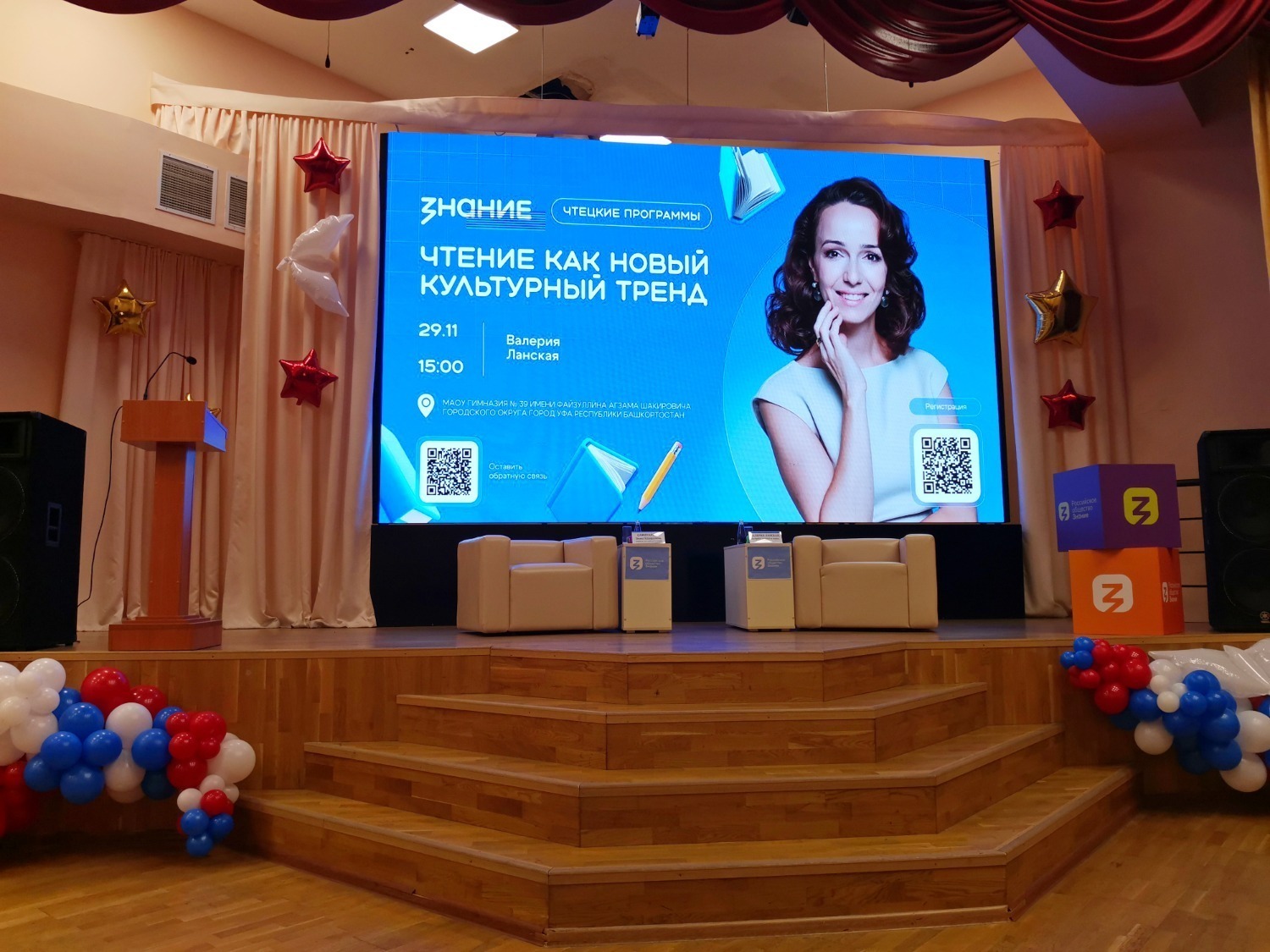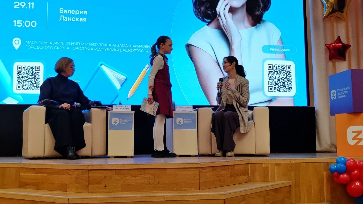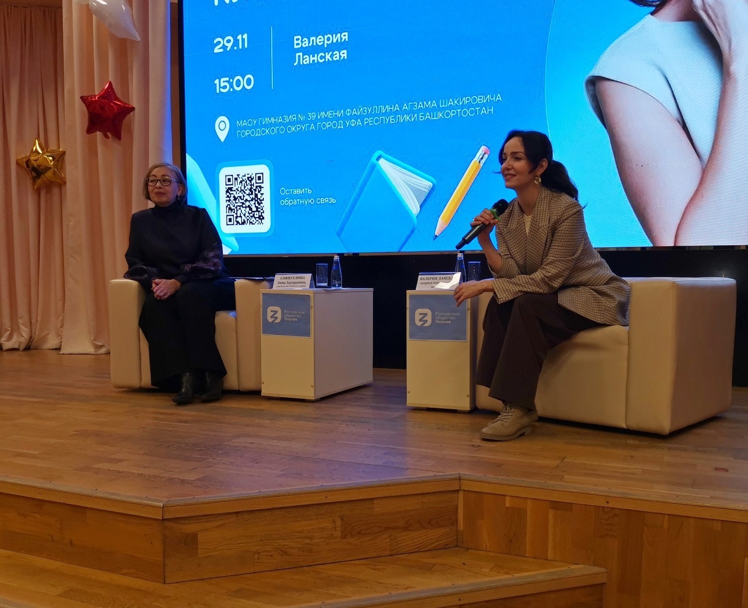 Сегодня в Уфе, несмотря на не зимнюю и хмурую погоду, состоялось довольно милое мероприятие в стенах гимназии № 39 им. Файзуллина А.Ш. в ассоциированной школе ЮНЕСКО. На встрече со школьниками лектором Российского общества «Знание» выступила довольно известная актриса театра и кино Валерия Ланская. Она уже давно активно участвует в культурно-просветительских проектах этого общества.
