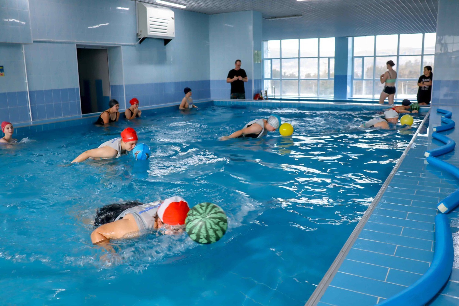 Соревнования прошли в городском бассейне «Дельфин», их организатором выступил женсовет комбината при поддержке профсоюзного комитета предприятия. Мальчишкам и девчонкам в возрасте от 7 до 12 лет, а также их мамам предстояло вместе пройти несколько испытаний: попасть мячом в импровизированные ворота, на скорость наполнить водой пластиковую бутылку, собрать как можно больше предметов на воде и под водой и прочее.