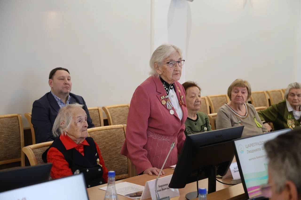 На встрече выступила Людмила Васильевна Цареградская, пережившая ужасы блокады Ленинграда в раннем детстве, поделилась воспоминаниями о трудностях и лишениях, а также об удивительной стойкости человека, о сплоченности и готовности советских людей прийти на помощь ближнему даже в самые тяжелые моменты.