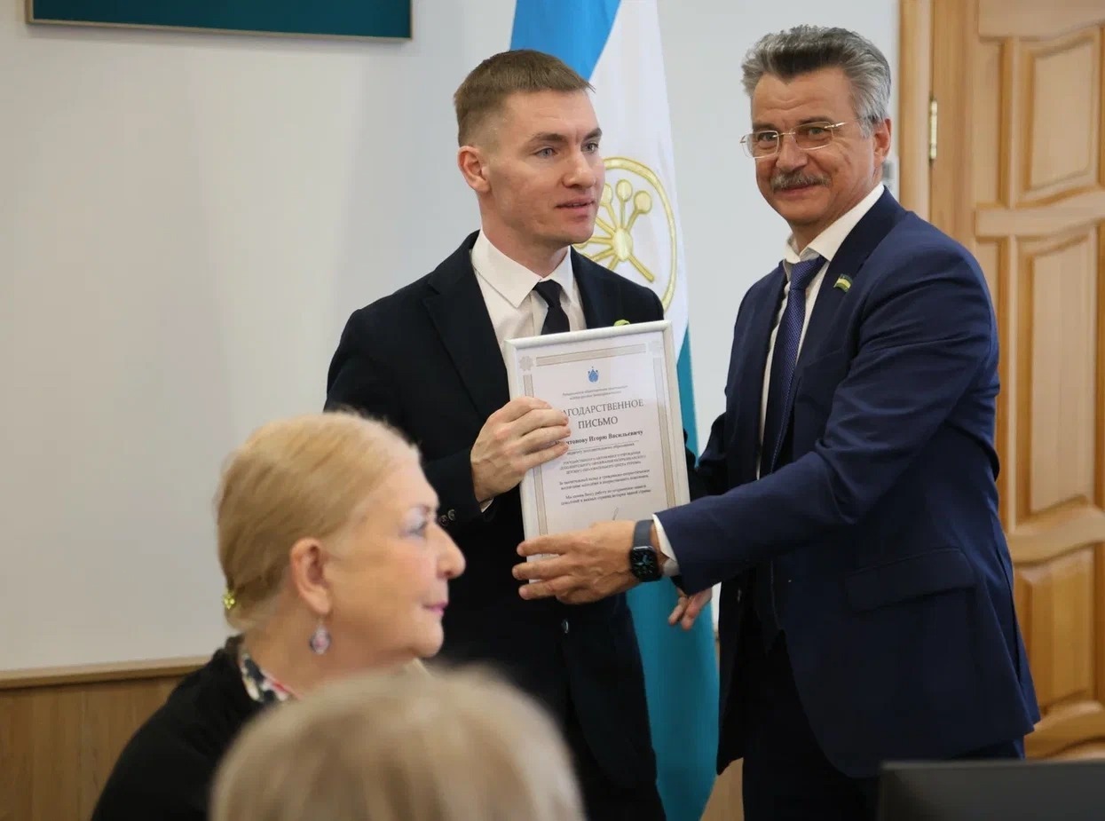 Депутат Павел Васильев с чувством глубокой признательности вручил Благодарственное письмо автору этого значимого для всех наших граждан документального фильма.